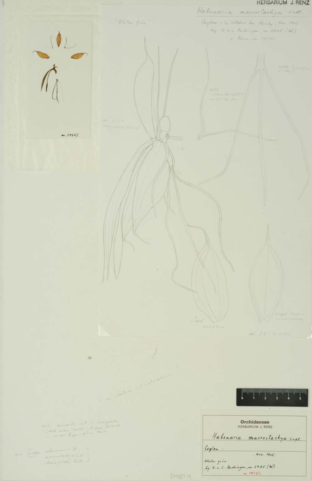 Habenaria macrostachya Lindl. 1835 SECTION Macroceratitis Kraenzl Drawing by © Dassanayake & Fosberg