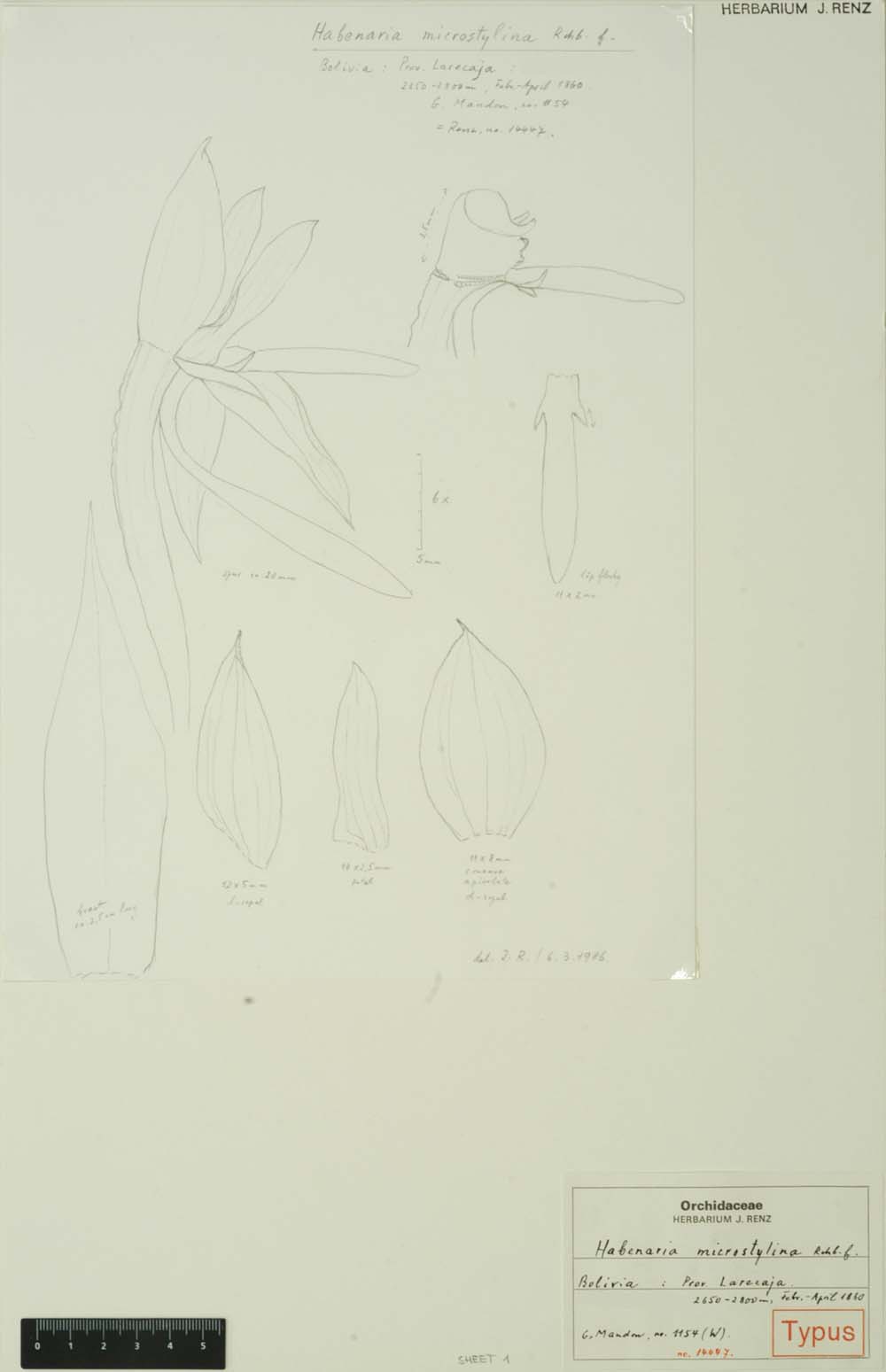 Habenaria microstylina Rchb.f. 1878 SECTION Leptoceras TYPE Drawing by © Mandon and © The Swiss Orchid Foundation at the Jany Renz HerbariaWebsite