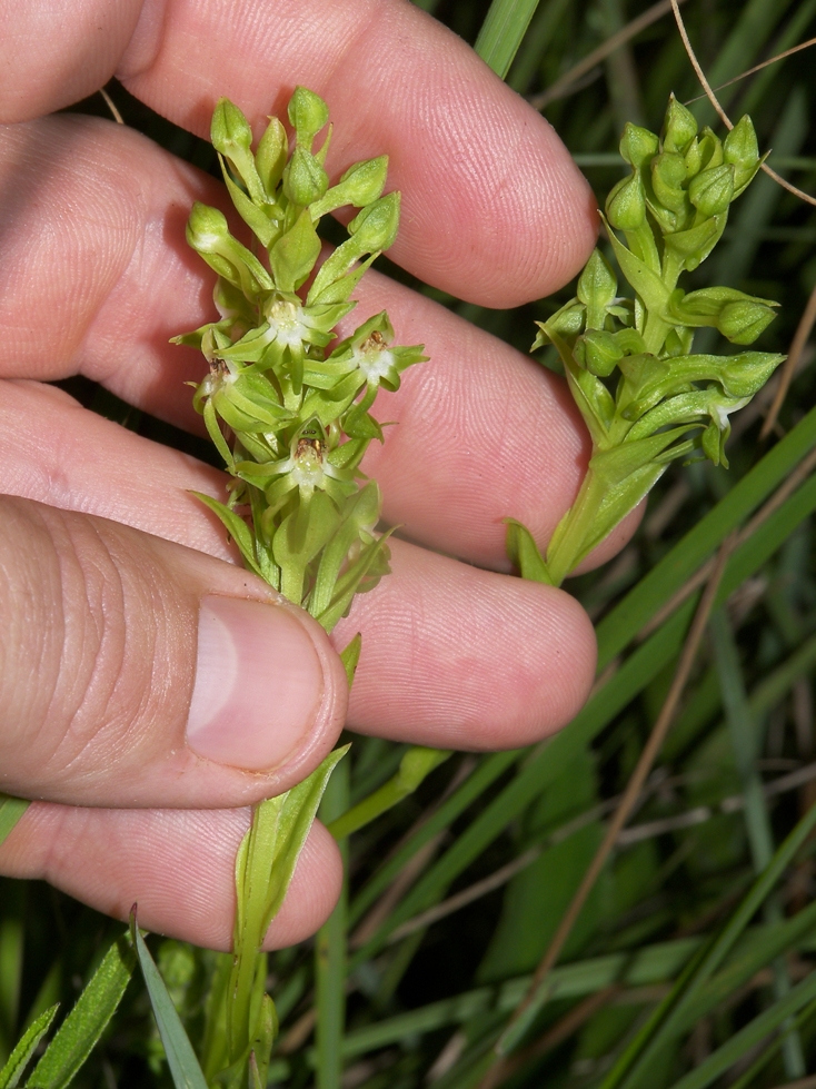 Found in Peru, Bolivia, Brazil and Argentina in open grassy paramo at elevations around 2500 to 3100 meters as a miniature sized, cold growing terrestrial with a small, ovoid to oblong tuber giving rise to an erect, rounded to angular, leafy below stem carrying basally clasping, lanceolate, acute, erect, rather thin leaves that decrease in size towards the apex and blooms in the later spring on a more or less elongate, to 4.8" [12 cm] long, rather laxly many flowered inflorescence