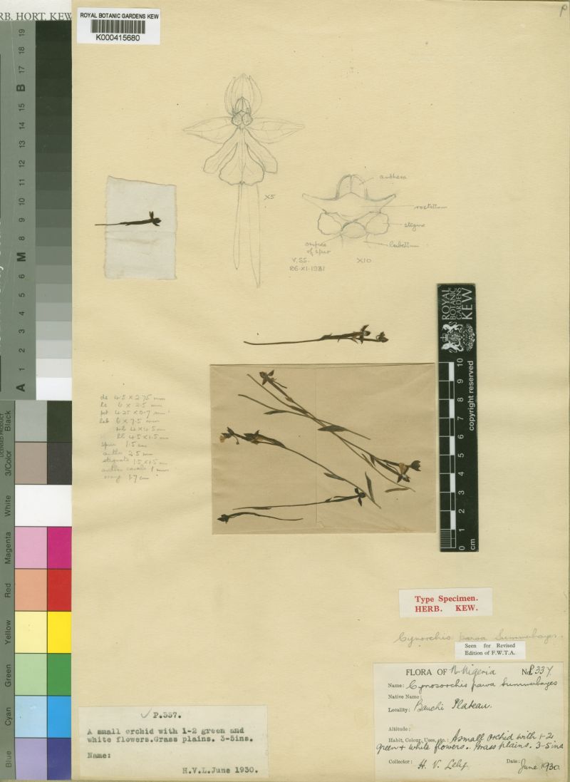 Habenaria parva (Summerh.) Summerh. 1938 SECTION Macroceratitis Kraenzl Drawing by © Lely and The Royal Botanical Garden Kew Website