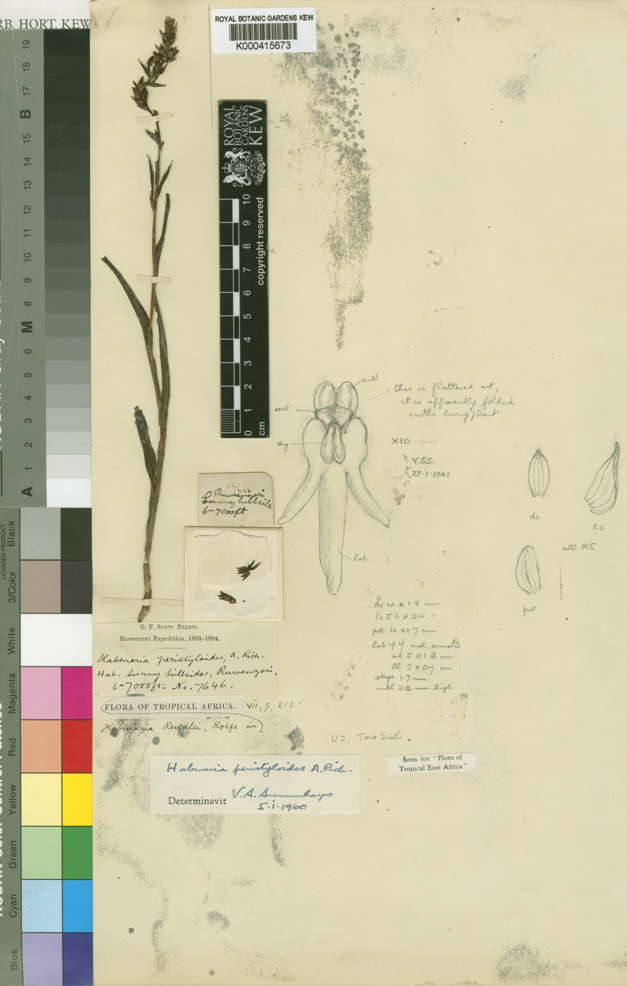 References W3 Tropicos, Kew Monocot list , IPNI ; Orchids of East Africa Piers 1968 as Habenaria peristyloides ; Flora of Tropical East Africa Orchidaceae Part 1 Summerhayes 1968 as Habenaria rendelii; Flora of Tropical East Africa Orchidaceae Part 1 Summerhayes 1968 as Habenaria ukingensis; Flore D'Afrique Centrale [Zaire- Rwands - Burundi] Orhidaceae Premeir parte Geerink 1984; Orchids of Kenya Stewart & Campbell 1996 as Habenaria peristyloides; Field Guide to Ethiopian Orchids Demissew, Cribb & Rasmussen 2004 as Habenaria peristyloides; Orchidaceae of West Central Africa Vol 1 Szlatchetko 2010 drawing good; Orchidaceae of West Central Africa Vol 1 Szlatchetko 2010 as Roeperocharis camerunensis drawing good;