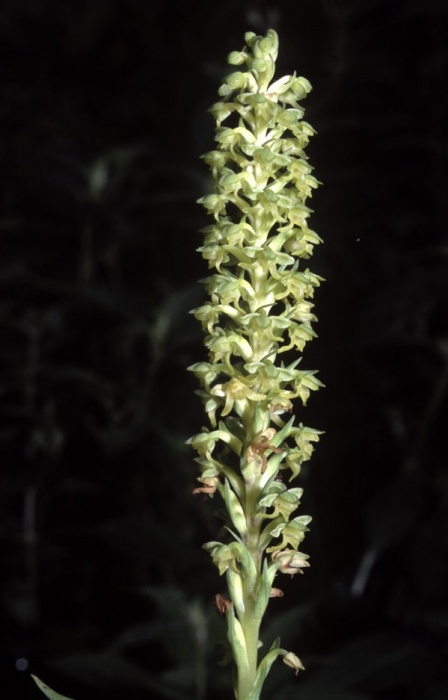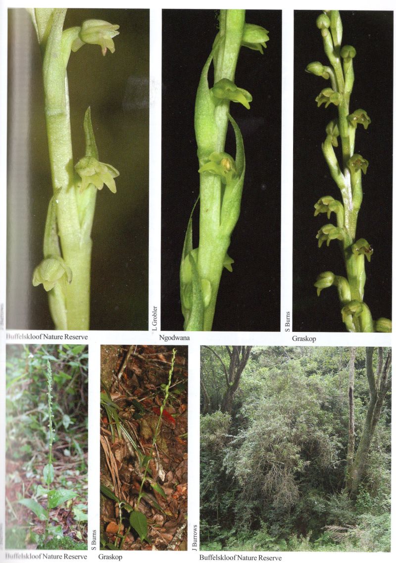 In all the references I have there seems to be two species described here. In the ones marked fide [Photos courtesy of Swiss Oerchid Foundation]in the reference file below the inflorescence is densely many flowered with wide open sepals. The ones marked no [Photo by Grobler etal] have a lax, very small flowered inflorescence with very closed flowers. I await more information. Use with caution.