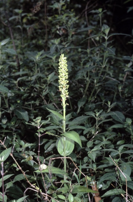 Found in Cameroon, Zaire, Burundia, Rwanda, Eritrea, Ethiopia, Uganda, Kenya, Tanzania, Malawi, Zambia, Zimbabwe, and Natal and Transvaal South Africa in short grasslands, among scrub or at the forests edge at elevations of 1700 to 3150 meters as a giant sized, cool to cold growing terrestrial with an ellipsoid tuber giving rise to an erect, leafy stem carrying 5 to 9, lowest 2 sheathing, all others ovate, acute often undulate margins, basally clasping leaves that blooms in the summer on an erect, 2 to 8" [5 to 20 cm] long, laxly to fairly densely many flowered inflorescence with lanceolate, acute, longer than the ovaries floral bracts and carrying fragrant flowers