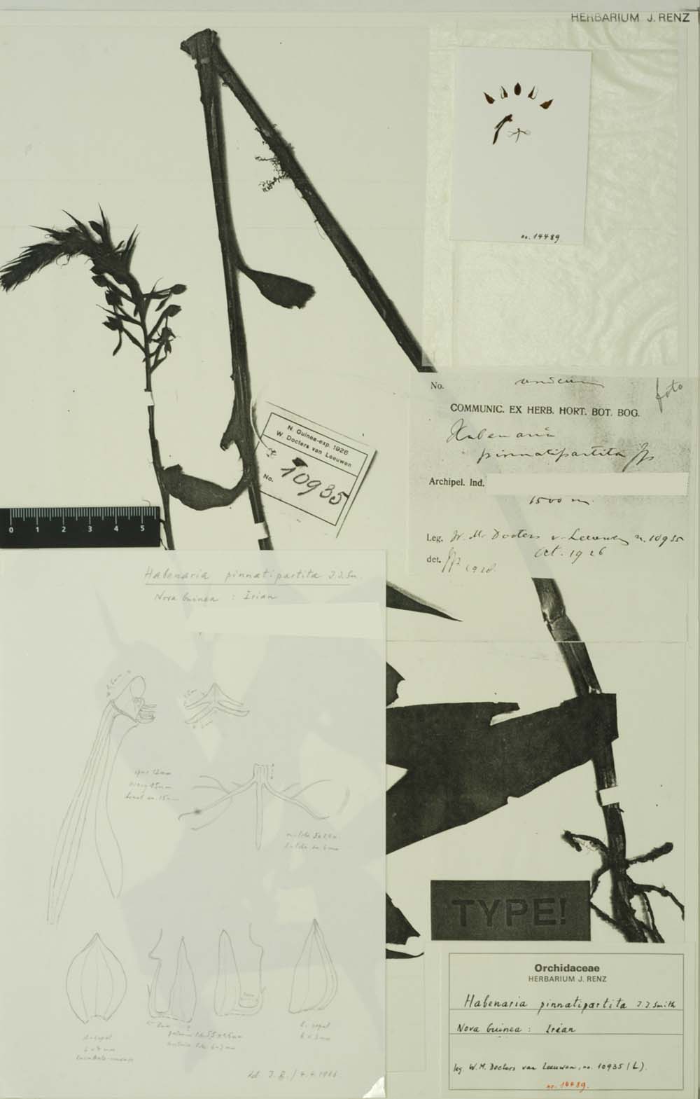 Habenaria pinnatipartita J.J.Sm. 1935 Type Drawing and Collection sheet by © J Renz and The Swiss Orchid Foundation at the Jany Renz Herbaria Website