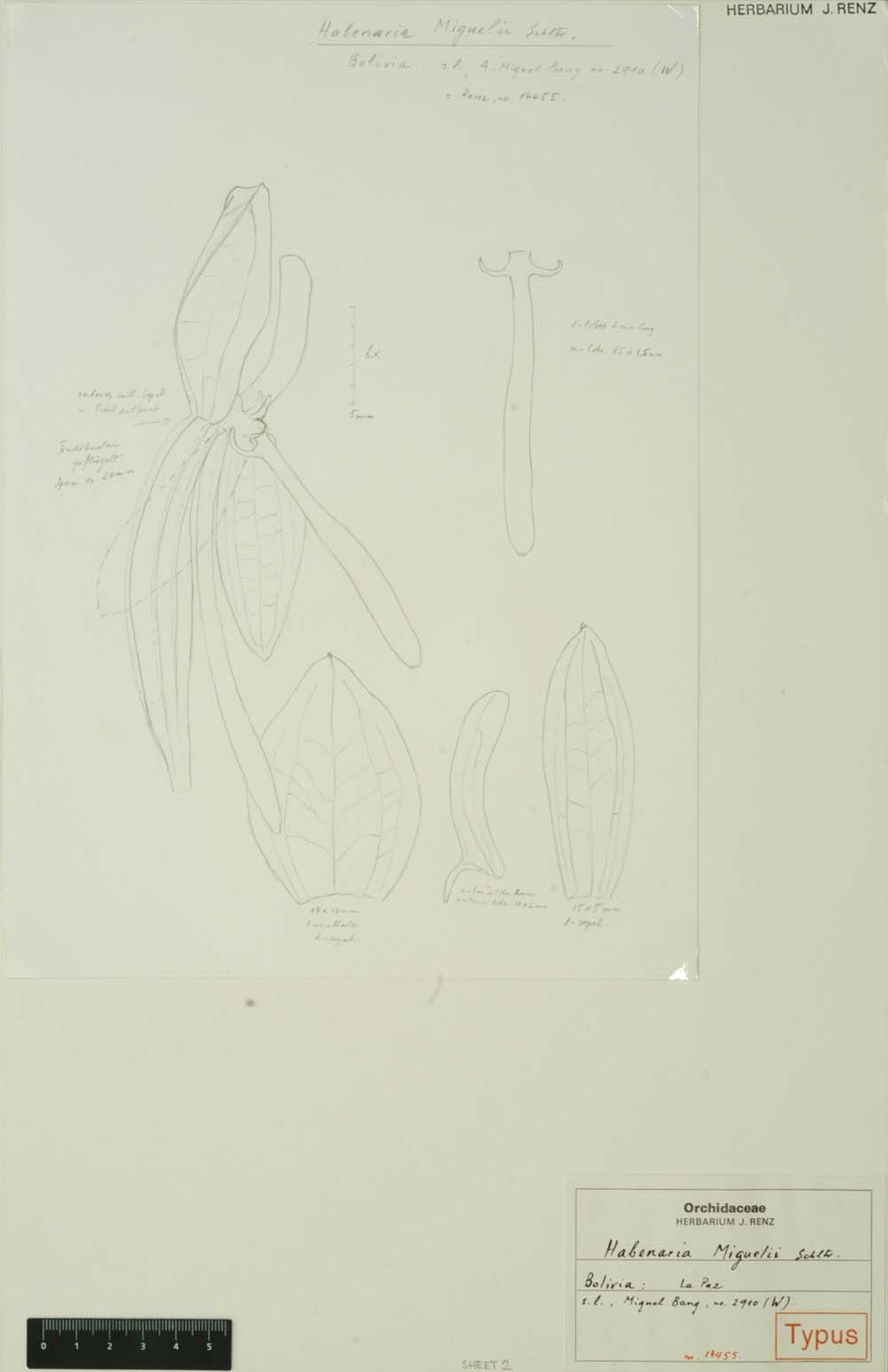 Drawing of what was H miguelii Drawing by © Renz and the Swiss Orchid Foundation at the Herbarium Jany Renz Website