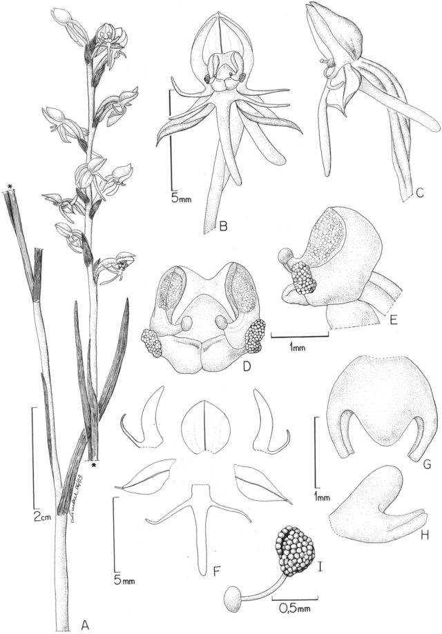 Habenaria quadriferricola J.A.N.Bat. & B.M.Carvalho 2016 TYPE Drawing by © J.A.N.Bat., Bianch. & B.M.Carvalho and Four New Species in Habenaria (Orchidaceae) from the Espinhaço Range, Brazil Research Gate Website