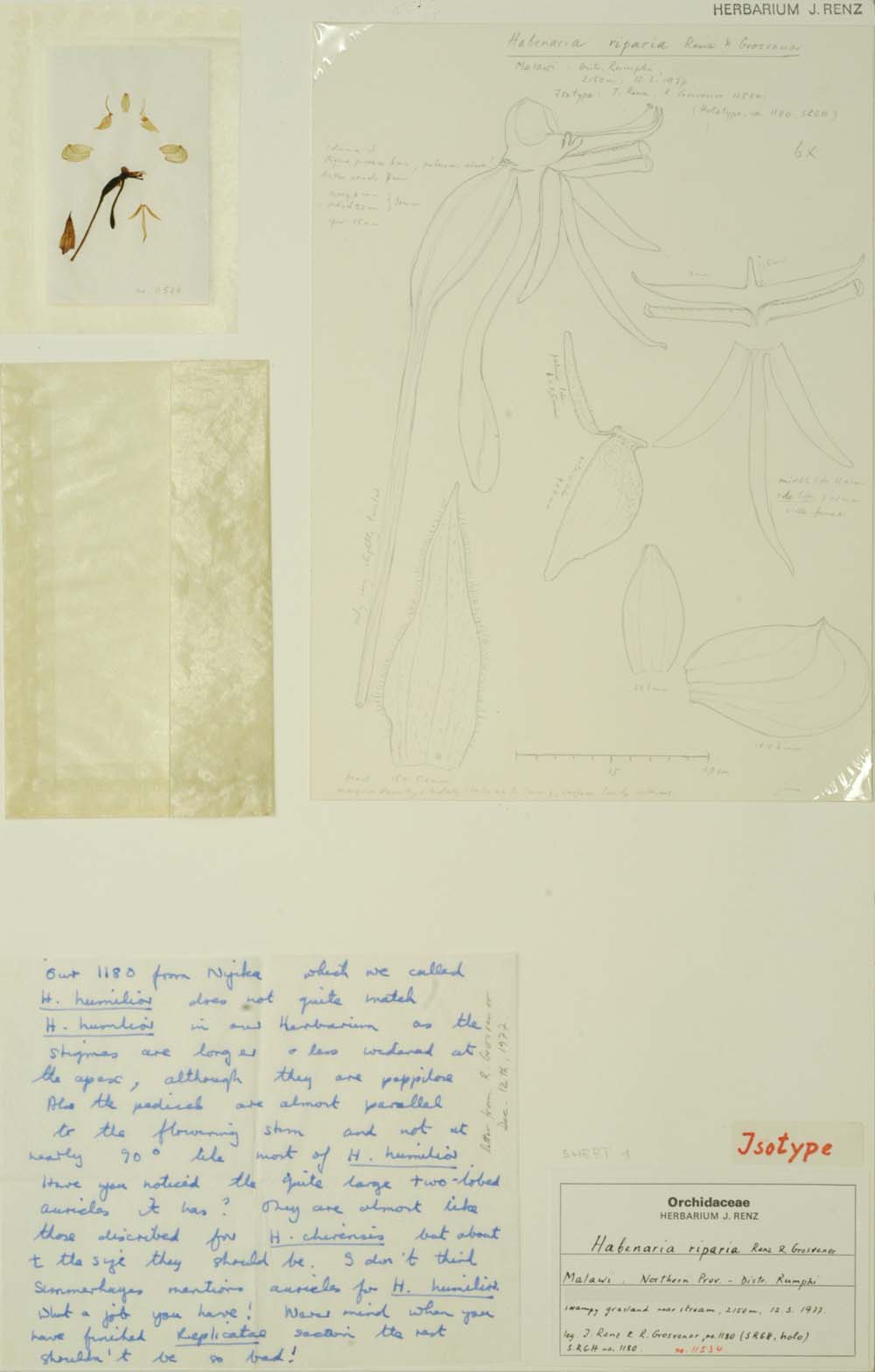 Habenaria riparia Renz & Grosvenor 1979 SECTION Replicatae Drawing by © Jany Renz and The Plant Illustrations Webpage