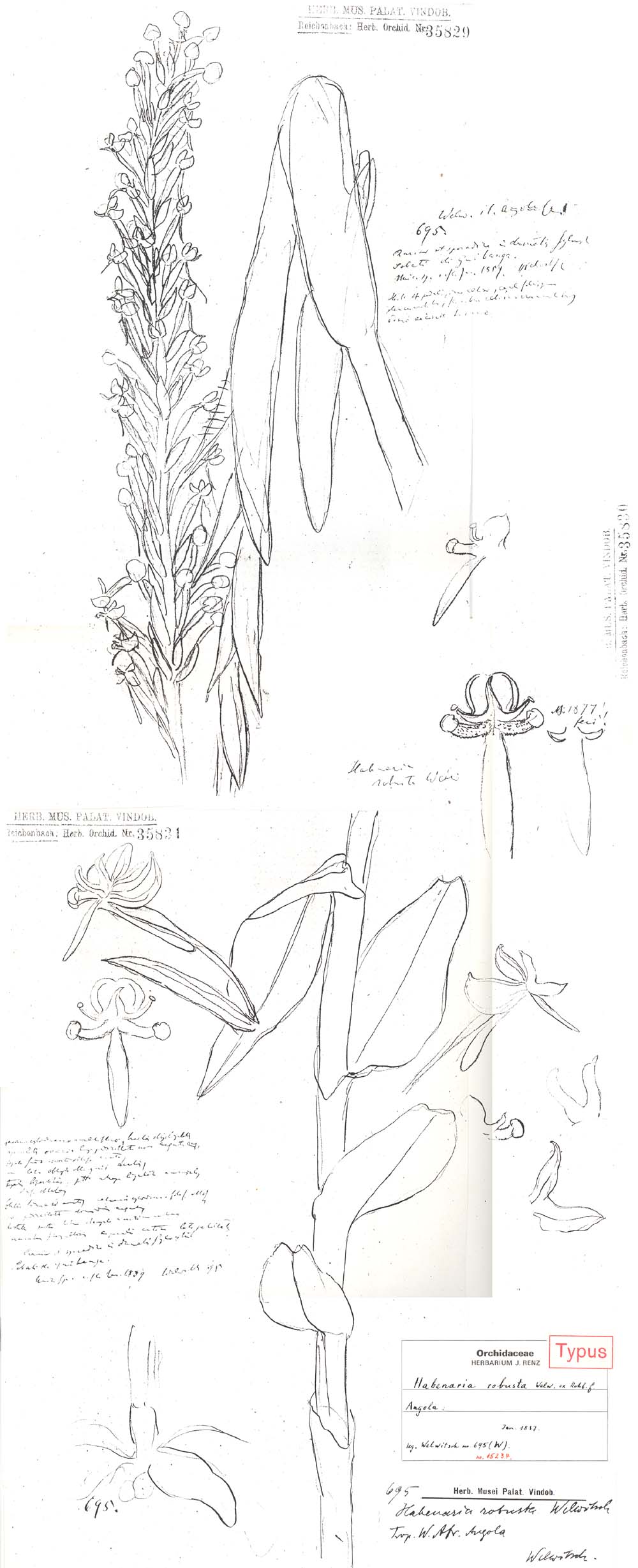 Habenaria robusta Welw. ex Rchb.f. 1867 SECTION Replicatae TYPE Drawing by © Welwitsch and The Swiss Orchid Foundation at the Jany Renz Herbaria Webpage