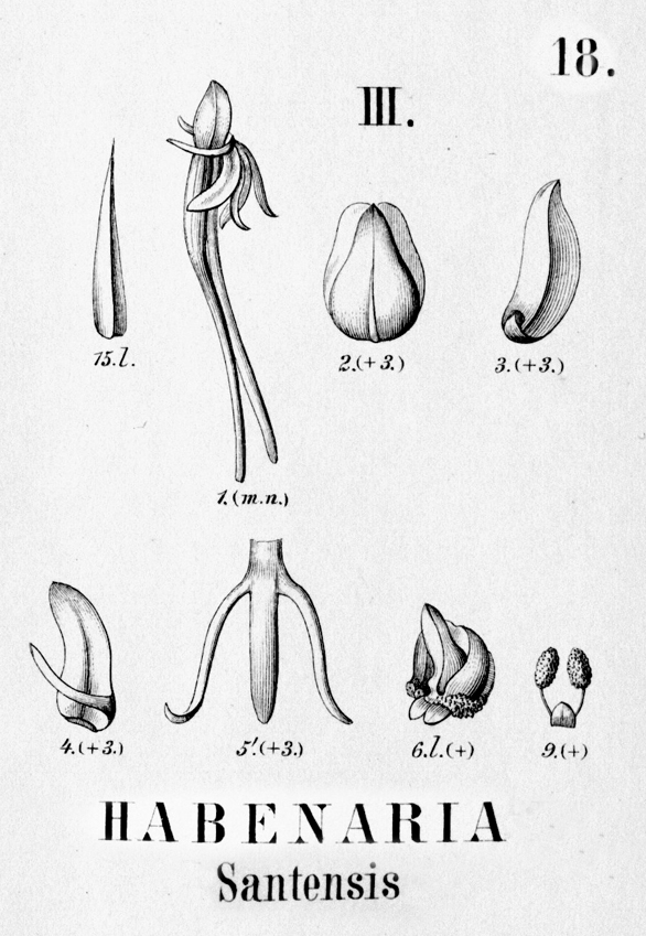 Habenaria santensis Barb.Rodr. 1882 SECTION Nudae TYPE Drawing by © Cogniaux and The Wikipedia Habenaria website