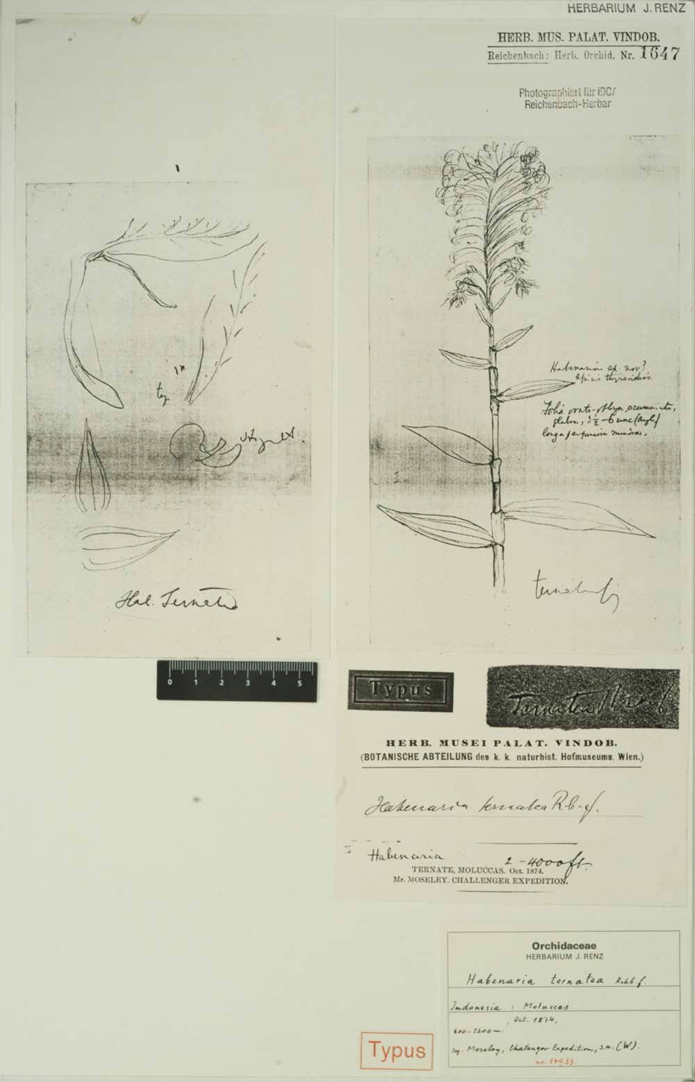 Habenaria ternatea Rchb.f. 1876 SECTION Medusiformes Kraenzl Drawing by © J J Smith and The Swiss Orchid Foundation at the Jany Renz Herbaria Website