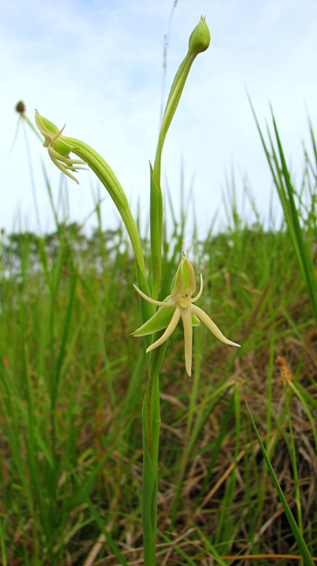 Found in Mexico, Guatemala, Belize, El Salvador, Honduras, Nicaragua, Costa Rica, Panama, Trinidad & Tobago, Fr Guiana, Surinam, Guyana, Venezuela, Colombia, Ecuador, Peru, Bolivia, Brazil and Argentina in mangrove swamps, grassy areas and in lowland savannas at elevations of 800 to 1625 meters as a small to medium sized, warm to cool growing terrestrial orchid with an erect stem completely enveloped by leaf bearing sheaths carrying 4 to 8, narrow, acuminate, erect to patent, basally clasping leaves that blooms in the summer and fall on a terminal, few [1 to 3] flowered inflorescence.