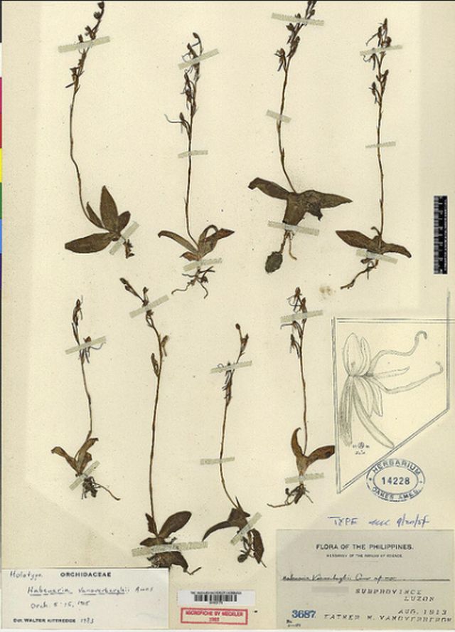 Habenaria vanoverberghii Ames 1915 TYPE Drawing and Collection sheet by © Ames and The Filibot Website