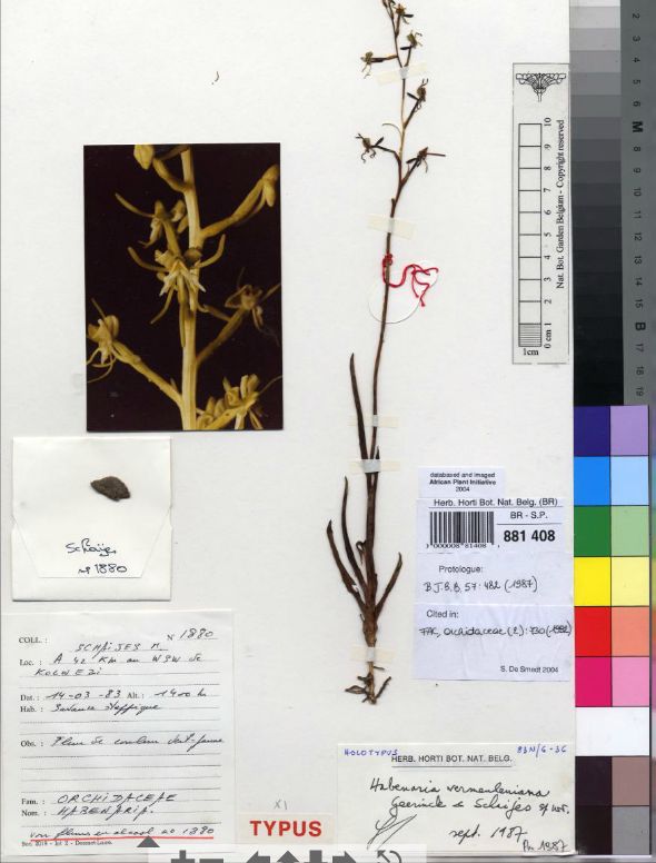 Habenaria vermeuleniana Geerinck & Schaijes 1987 Type Collection sheet by © Geerinck & Schaijes and The Belgium National Herbarium Horticultural Botanical Website