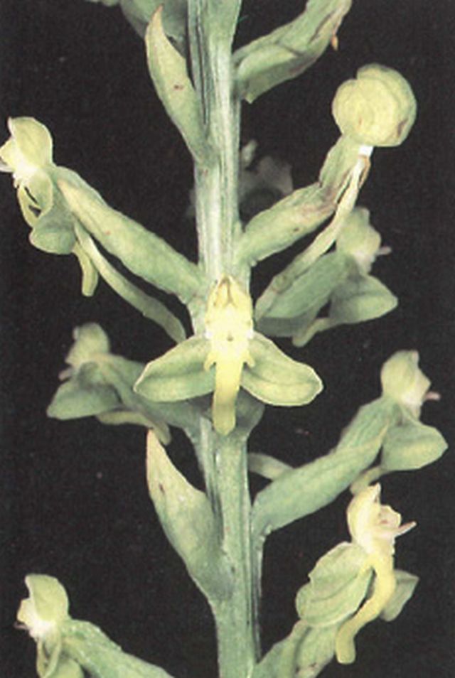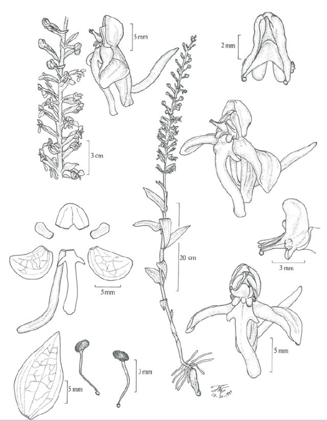 Found in Mexico in oak forests at elevations of around 2200 meters as a medium to large sized, cold growing terrestrial with subterranean, ovoid to oblong tubers giving rise to an erect stem carrying 5 to 12, elliptic-lanceolate, ascending to extending, acute leaves that blooms in the late summer and early fall on an erect, racemose, 16" [40 cm] long, 10 to 40 flowered inflorescence with less than to somewhat longer than the ovary floral bracts.