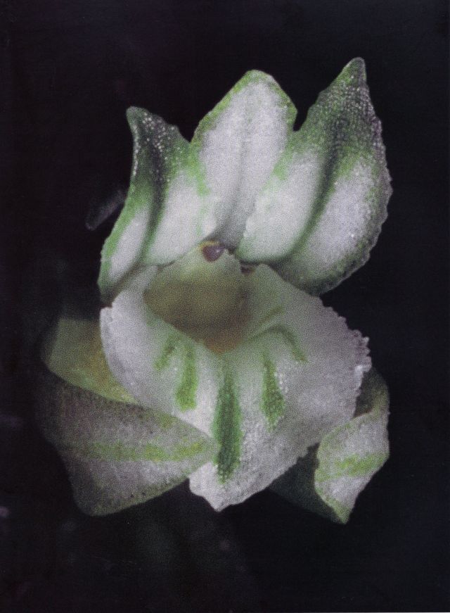 Found in Costa Rica, Ecuador,Peru and Bolivia at elevations of 1000 to 3000 meters as a miniature sized, cool to cold growing terrestrial with fasciculate,slender, tuberous,pubescent roots giving rise to several, basal to congested on the ascending bse, ovate, aacute, rounded to subcuneate below into he petiolate base leaves that blooms in the late winter and early spring on an erect, slender, glabrous below, finely glandular pubescent above, several sheathed, terminating in a secund, few flowered inflorescnece.