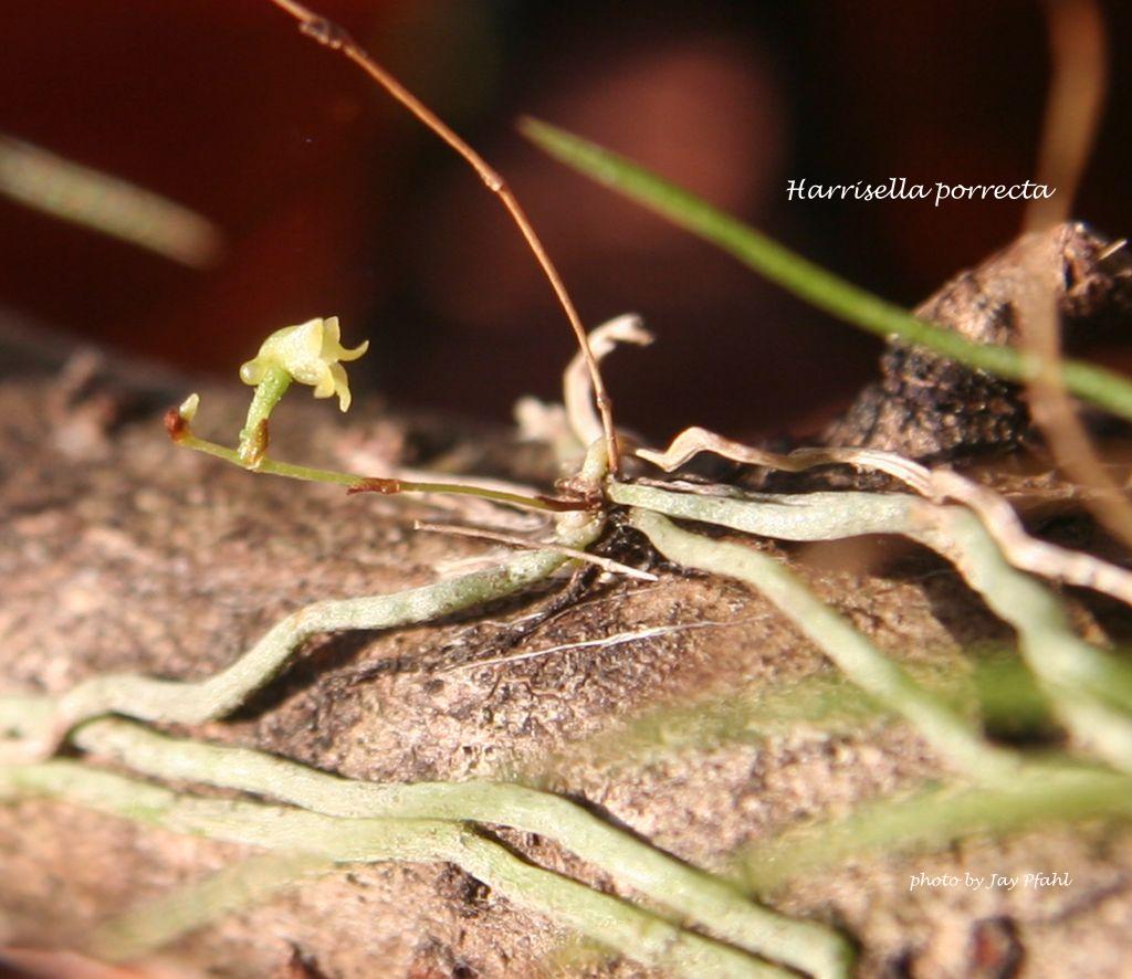 References W3 Tropicos, Kew Monocot list , IPNI ; Studies in the Family Orchidaceae Vol 1 Ames 1905 as Campylocentrum porrectum drawing fide; Symbolae Antillanae Vol VI Orchidaceae Urban 1909 as Harrisella porrecta; Flora of Jamaica Fawcett & Rendle 1910 as Harrisella porrecta drawing fide; Die Orchideen Schlechter 1915 as Harrisella porrecta; Die Orchideen Schlechter 1915 as H amesiana; Native Orchids of Florida Luer 1972 as Harrisella porrecta; Encyclopedia of Cultivated Orchids Hawkes 1965 as Campylocentrum porrectum; The Native Orchids Of Florida Luer 1972 as Harrisiella porrecta Drawing/photo fide; AOS Bulletin Vol 44 #8 1975 as harrisiella porrecta; AOS Bulletin Vol 50 No 5 1981 as Harrisella porrecta photo fide; Las Orquideas De El Salvador Vol 3 Hamer 1981 as Campylocentrum porrectum drawing/photo fide; AOS Bulletin Vol 53 No 3 1984 as Harrisella porrecta photo fide; Flora Novo-Galaciana Vol 16 McVaugh 1985 as Campylocentrum porrectum; An Introdution to the Orchids of Mexico Wiard 1987 as Harrisella porrecta photo fide; Rudolph Schlechter Die Orchideen Band 1B lieferung 16/17/18 945-1128 Brieger 1985 as Harrisella porrecta drawing/photo fide; Rudolph Schlechter Die Orchideen Band 1B lieferung 16/17/18 945-1128 Brieger 1985 as H uniflora; Selbyana Vol 10 Orchids of Central America Hamer 1988 as Campylocentrum porrectum drawing fide; An Orchid Flora Of Puerto Rico and the Virgin Islands Ackerman 1995 as Harrisella porrecta; Orchid Digest Vol 61 #4 1997 as Harrisiella porrecta drawings/photo fide; AOS Bulletin Vol 69 No 3 2000 as Harrisella porrecta photo fide; Orchidaceae Antillanae Nir 2000 as Campylocentrum porrectum; Harvard Pap. Bot. 5 #2: Carnevali etal. 2001; The Wild Orchids of Florida Brown 2002 as Harrisella porrecta; AOS Bulletin Vol 72 No 5 2003 as Harrisella porrecta photo fide; AOS Bulletin Vol 75 No 10 2006 as Harrisella porrecta photo fide; Algunas Orquideas de Mexico Tomo 1 Suarez 2013 as Harrisella porrecta photo fide; AOS Bulletin Vol 82 #12 2013 photo fide; Orchid Flora of the Greater Antilles Ackerman 2014 drawing fide; Genera Orchidacearum Vol 5 Part 3 Epidendroideae Pridgeon, Cribb, Chase and Rasmusen 2014 drawing fide; AOS Bulletin Vol 84 #3 2015 photo fide;