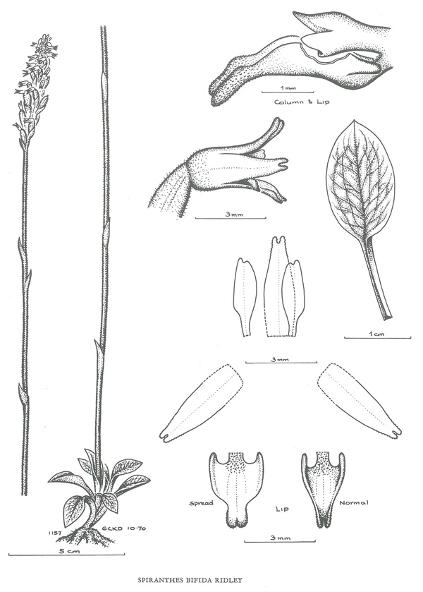 Synonyms Beadlea bifida (Ridl.) Garay & Dunst. 1979; Beloglottis bifida (Ridl.) Szlach.1996; Cyclopogon bifidus (Ridl.) Schltr. 1920; *Spiranthes bifida Ridl. 1887