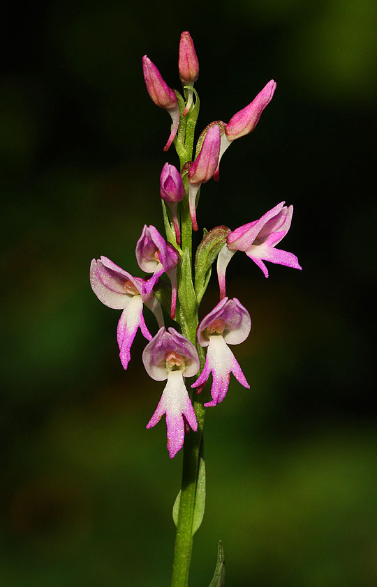 Found in southeastern Gansu, northeastern Guizhou, southern Qinghai, south and western Sichuan, eastern & Southern Xizang and northwestern Yunnan provinces of China, the eastern Himalayas, Nepal and the western Himalayas in forests, thickets and alpine grasslands at elevations of 2100 to 4500 meters as a mini-miniature sized, cold growing terrestrial with a subglobose to ovoid tuber giving rise to an erect to ascending stem provided with 1 to 2 tubular, basal sheaths and carrying 2, oblanceolate-spathulate to narrowly oblong, usually acute, gradually tapering below into the base leaves that boooms in the summer and earlier fall on a terminal, erect, peduncle ebracteate to rarely with 1 sterile bract, rachis .6 to 3.2" [1.5 to 8 cm] long,subdensely 6 to 20 flowered inflorescence with lanceolate, acuminate lower ones longer, the upper ones shorter than the ovary floral bracts.