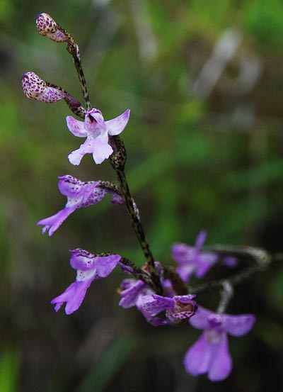 Found in southeastern Xizang province of China and northeastern India in broad-leaved evergreen forests, grasslands and sandy soils along rivers at elevations of 2100 to 3400 meters as a small to medium sized, cool to cold growing terrestrial with purple spots throughout the plant and flower and has tubers giving rise to an erect stem with 2 sterile, scale-like bracts and carrying a single, light purple abaxially, green spotted with purple adaxially, elliptic to ovate-oblong leaf that blooms in the later summer on an erect, 3.2" to 8" [8 to 20 cm] long, 2 to 20 flowered inflorescence with shorter than the ovary floral bracts.