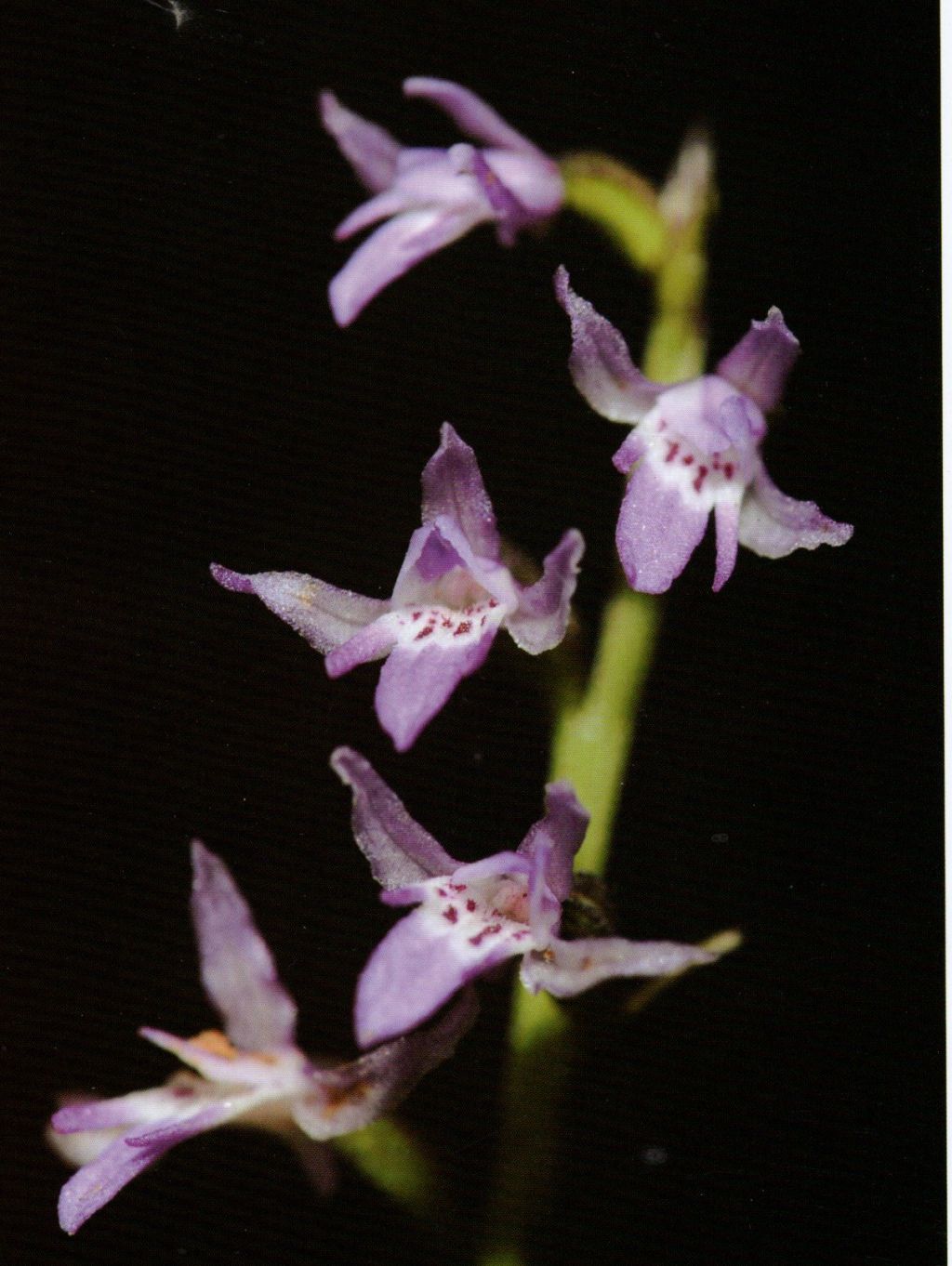 Found in northwestern Yunnan province of China in marshes and wet grasslands at elevations around 2900 meters as a mini-miniature to miniature sized, cold growing terrestrial with globose tubers giving rise to an erect, provided with a basal, tubular sheath stem and carrying a single, cauline, porrect, narrowly oblong-lanceolate, acute leaves that blooms in the late summer and early fall on a terminal, peduncle provided with 2 occasionally foliaceous sterile bracts, rachis .8 to 2.4" [2 to 6 cm] long, subdensely 6 to 9 flowered inflorescence with lanceolateshorter than the overy floral bracts and carrying secund, fragrant flowers.