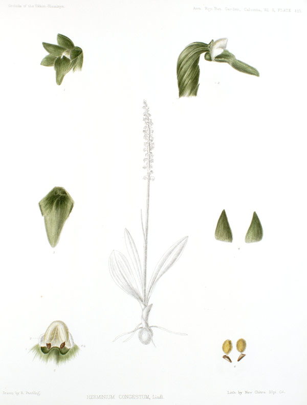 References W3 Tropicos, Kew Monocot list , IPNI ; The Orchids of Sikkim-Himalaya Part 1 King & Pantling 1898 as Herminium congestum drawing fide; The Orchids of North-Western Himalaya Vol IX Part II Duthie 1906 as H congestum; Indian Orchids: Guide to Identification and Culture Pradhan 1976 drawing Orchids of Bhutan Pearce & Cribb 2002; Flora of China Vol 25 Orchidaceae Zhengyi, Raven and Duyuan 2009; Atlas of Native Orchids of China Vol 1 Jin Xiaohua, Li Jianwu and Ye Deping 2019 photo ok;