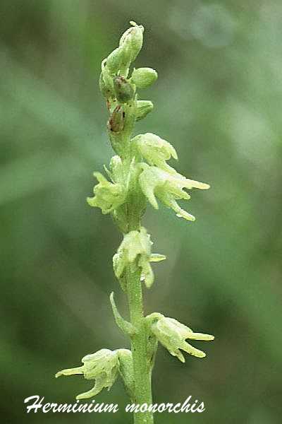 Synonyms Arachnites monorchis [L.]Hoffmanns. 1791; Epipactis monorchis (L.) F.W.Schmidt 1795; Herminium alaschanicum var. tanguticum Maxim. 1887; Herminium clandestinum Gren. & Godr. 1846; Herminium tanguticum (Maxim.) Rolfe 1903; *Ophrys monorchis Linne 1753; Ophrys triorchis St.-Lag. in A.Cariot 1889; Orchis chonorchis All. ?; Orchis herminium Gren. 1855; Orchis monorchis [L.]All. 1785; Satyrium monorchis Pers. 1807