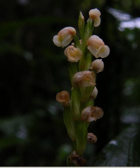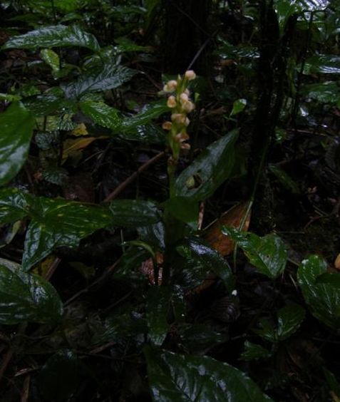 Found in Ivory Coast, Liberia, Nigeria, Gulf of Guinea Islands, Gabon, Cameroon, Congo, Zaire, Tanzania and Madagascar in forests at elevations around 700 to 1000 meters as a small sized, warm growing terrestrial with an erect stem carrying towards the middle, acute, rounded to subcordate basally, petiolate base leaves that blooms in the later summer and earlier fall on an erect, to 8" [20 cm] long, overall, rachis 2.4" [6 cm] long, 3 to 20 flowered inflorescence carrying green and white, resupinate flowers.