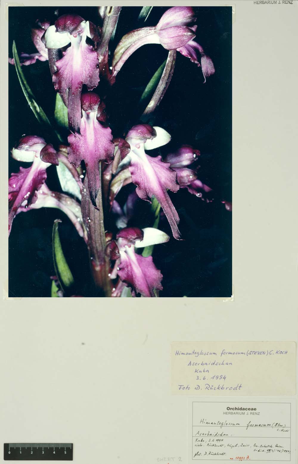 Synonyms Aceras formosum (Steven) Lindl. 1835; Loroglossum formosum (Steven) E.G.Camus & Bergon 1908; Loroglossum hircinum subsp. formosum (Steven) E.G.Camus 1908; *Orchis formosa Steven 1813; Orchis mutabilis Steven 1812