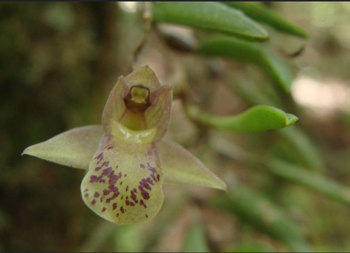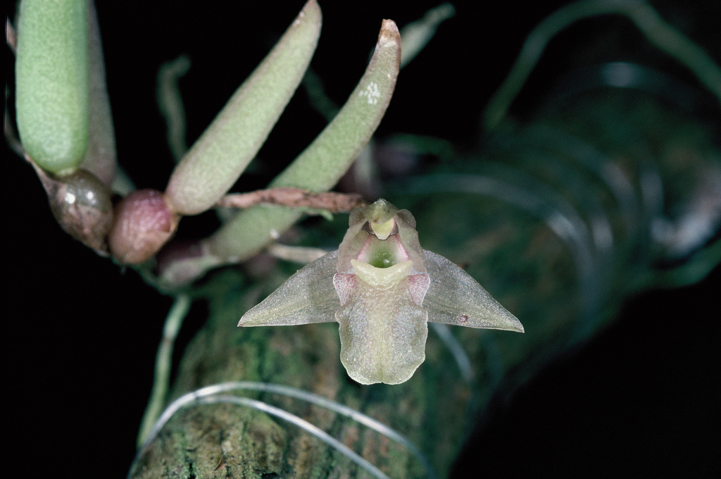 A miniature sized, cold to cool growing epiphyte found in Jalisco, Michoacan, Guerrero and Mexico states of Mexico at elevations around 1800 to 2800 meters on trees in oak, oak-pine, or mixed deciduous forests of the Pacific coast with a creeping rhizome giving rise to erect, ovoid pseuobullbs enveloped partially by an inflated sheath and carrying a single, apical, coriaceous, oblong lanceolate, blunt or apiculate apically leaf that blooms in the fall on a .2" to .4" [.5 to 1 cm] long, single flowered inflorescence.