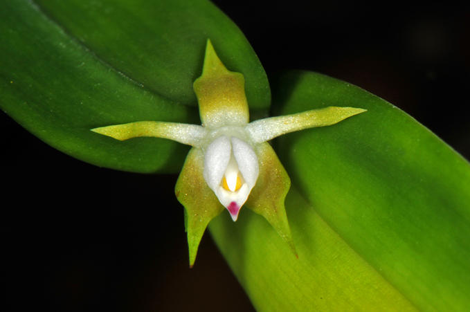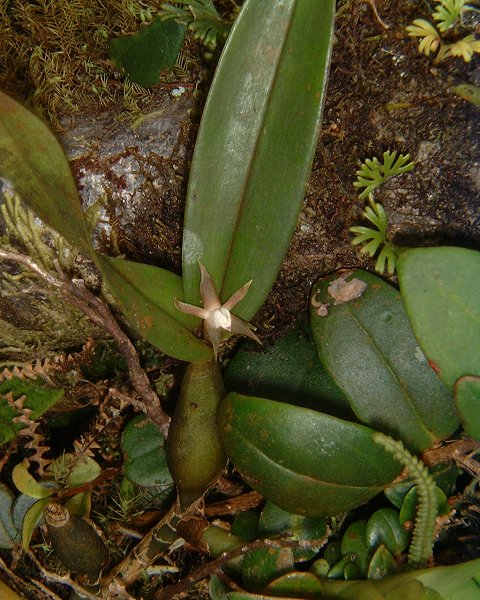 Found in Florida, Cuba, Dominican Republic, Haiti, Jamaica, Leewards?, Puerto Rico, Trinidad & Tobago, Windwards, Mexico, Guatemala, Belize, Honduras, Nicaragua, Costa Rica, Panama, French Guiana, Surinam, Guyana, Venezuela, Colombia, Ecuador, Peru, Bolivia and Brazil in wet montane forests at elevations of sealevel to 1700 meters as a common, hot to cool growing, miniature sized, creeping epiphyte with tiny elliptic pseudobulbs that form dense mats, and is and has the smallest flowers of the genus which occur mostly in the spring, summer and fall on a terminal, very short, subsessile, subumbellate inflorescence arising on a mature, fusiform, bifoliate, dark green psuedobulb partially enveloped basally by a few scarious sheaths and carrying 2, apical, narrowly lanceolate, acute, conduplicate at the base leaves and forming an apical spathe giving rise to a terminal, subsessile, subumbellate, racemose inflorescence usually occuring with one to two flowers held close to the apex of the pseudobulb.