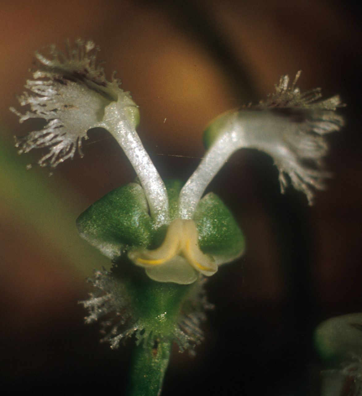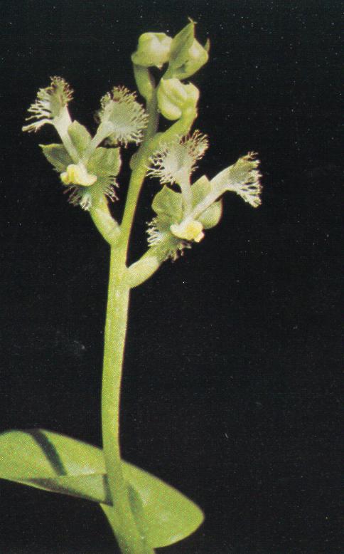 Found only in eastern South Africa at elevations 1000 to 1800 meters in forest patches on steep, southwestern slopes with a summer rainfall season in deep shade as a small to medium sized, cool to cold growing terrestrial orchid with an erect stem carrying 2, the lower larger, cordate, elliptic, the upper smaller, spreading, soft, petiolate base entirely sheathing leaves that blooms in the late summer on a terminal, erect, laxly, 6 to 20 flowered inflorescence