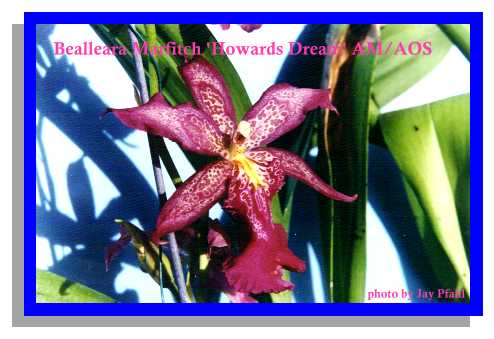 Beallara Brassia, Cochlioda, Miltonia, and Odontoglossum make up this large spotted Miltonia shaped genus.