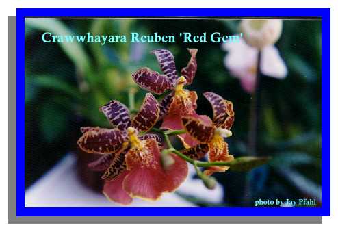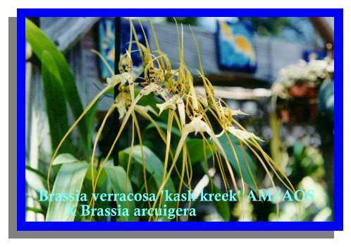 Crawwhayarara Aspasia, Brassia, Miltonia, and Oncidium are crossed to produce this genus of large lipped multiflowered plants.