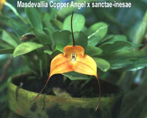 The parents of this cross are Mas. Copper Angel and Mas. sanctae-inesae and was registered by Highland Tropicals in 1992.