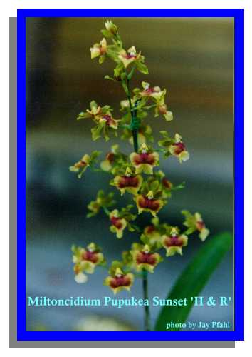 Miltoncidium Miltonia and Oncidium are the parents of this intergeneric cross.