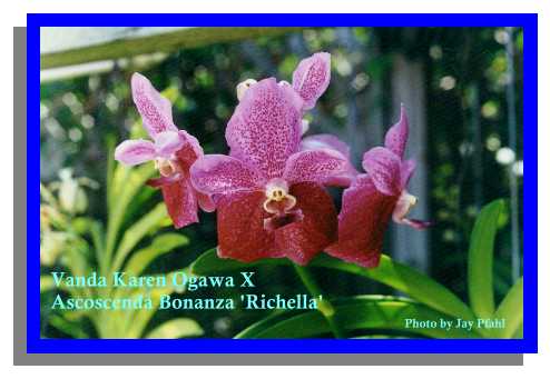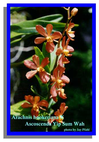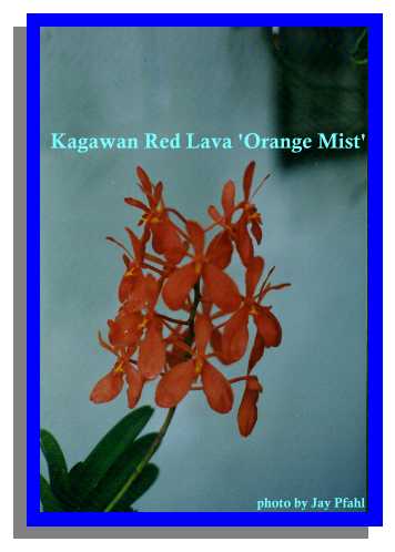 Kagawara Ascocentrum, Renanthera and Vanda make up this intergeneric cross that grows the same as Vandas in general. This is a multiblooming genus and if well grown can bloom at any time of the year.