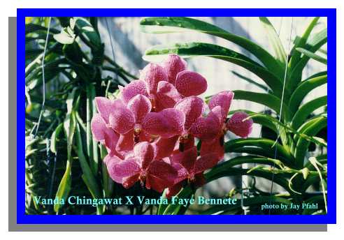 Aeridovanda Aerides and Vanda make up the parents of this genus which grows as Vandas. Bright light, regular watering year round, fertilize often and wood slat baskets with no medium suit this genus fine.