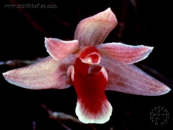 Found in the Amazonas region of Venezuela, Colombia, Ecuador, Peru and Brazil in lowland to montane forests at elevations of 160 to 1500 meters as a miniature sized, hot to COOL growing epiphyte with a sheath covered rhizome carrying clustered, ovoid-cylindrical, sulcate pseudobulbs completely enveloped by untidy, grey, evanescent sheaths and carrying a single apical, ligulate-lanceolate, acute, gradually narrowing below into the narrow, elongate, petiolate base leaf that blooms winter, spring and summer on a short, from the leaf sheath axils, single flowered inflorescence arising with new growths and holds the flower close to the pseudobulb.