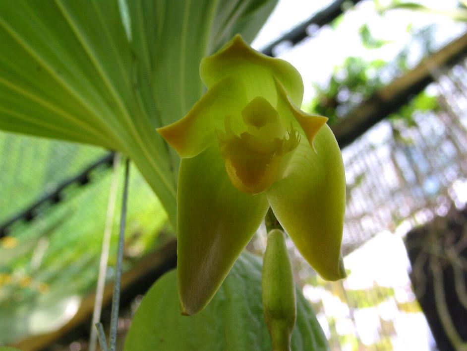Found in Haiti, Dominican Republic, Cuba and Jamaica on mossy rocks and in humus under tree fern at elevations of 150 to 775 meters as a medium sized, hot to cool growing epiphyte on trees or lithophyte with smooth, medium green, not spined afterleaf-fall pseudobulb carrying 2 to 3, plicate, ribbed, petiolate base leaves that blooms in the spring through summer on a 2.4" [6 cm], successively 4 to 5, single flowered inflorescence with nodding, fragrant flowers .