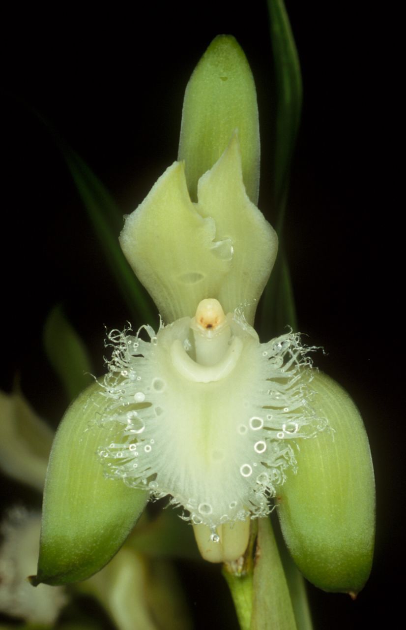 A medium sized, warm to hot growing, caespitose epiphyte and occasional lithophyte that is found around 200 to 1800 meters in Ecuador, Peru and Bolivia in wet montane forest with slender, tapered cylindric psedobulbs without spined with 2 to 3 apical, plicate, narrow, linear-lanceolate, acuminate leaves with a tapered to long petiole that blooms on an erect, 8" [20 cm] long, basal inflorescence arising on mature psuedobulbs with large, ovate, long-acuminate bracts occuring in the fall through spring. This species has the thinnest psuedobulbs and leaves of the genus.