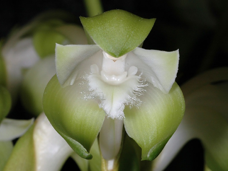 Found in Ecuador and Peru as a small sized, cool growing orchid with oblong-ellipsoid, slightly compressed, hexangular with blunt edges pseudobulbs carrying 2, elliptic-lanceolate, plicate, gradually narrowing below into the shortly petiolate base leaves that blooms in the fall on an erect, 1.2 to 3.2" [3 to 8 cm] long, single flowered inflorescnece carrying flowers with no fragrance.