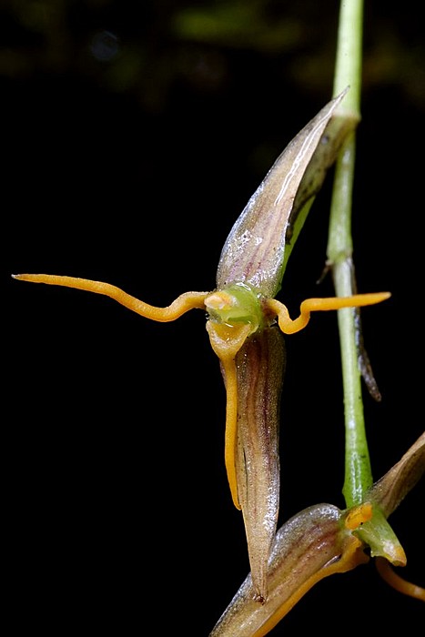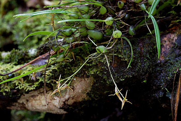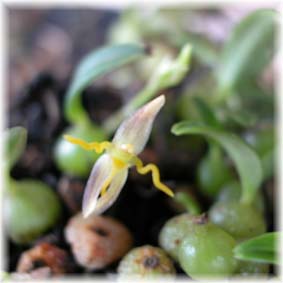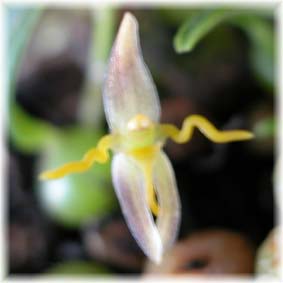 Found in Taiwan near Mt. Arisan and often cited as a synonym of Sunupia andersonii. I can assure you that I have checked this out. Jaap Vermeullen at Leiden has seen and verified. The flower is fairly unique and is very easy to distinguish as something new and not even approximate to Sunupia andersonii. What a great flower, little information available. This miniature sized, orchid has elongate-ovoid pseudobulbs carrying a single, apical, oblong-linear, round, shortly bilobulate, attenuate to the pseudobulb below leaf that blooms in the summer on a basal, erect, 1.2" [3 cm] long, single flowered inflorescence.