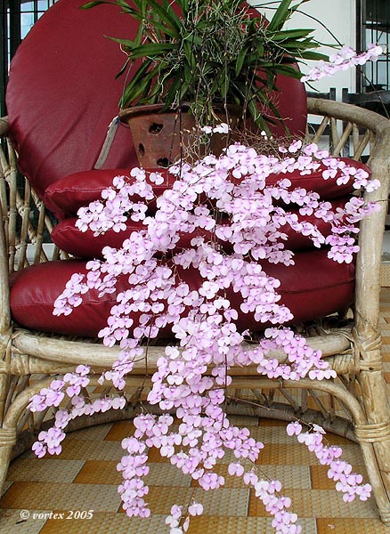 I collected this plant in Jamaica but they are also found in Mexico, Belize, Guatemala, Honduras, Nicaragua, Costa Rica, Panama, Haiti, Cuba, Dominican Republic, Haiti, Jamaica, Leewards, Puerto Rico, Trinidad & Tobago, Windward, French Guiana, Surinam, Venezuela Colombia, Ecuador, Galapagos, Peru, Bolivia, Paraguay and Brazil even being found rarely in Florida at elevations ranging from sealevel to 1300 meters, where it blooms in the spring and summer, and is a miniature to medium sized, cool to hot growing epiphyte found at altitudes up to 1100 meters in humid forests and citrus groves. It is a small, scrambling plant with ellipsoid, compressed, 1/2" psuedobulbs that bear a single, apical, linear to oblong-elliptic, acute leaf and 2 to 3, 6" linear or lanceolate, carinate, stiff and imbricate leaves that surround and enfold the rhizome and, a basal, erect, up to 3' long, branching panicle, terminating in densly numerous flowers that open in succession over months. The color of the flowers ranges from white to pink, lavender to purple and are quite a site in full bloom.