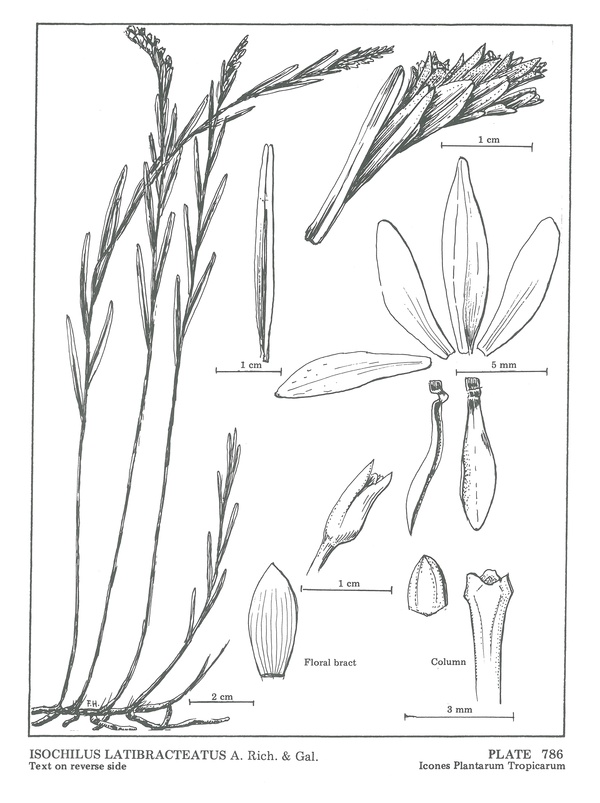References W3 Tropicos, Kew Monocot list , IPNI Repert. Sp. Nov. Regni. Veg. Beih. 19: 112. Costa Rica Schlechter 1923 as I latibracteatus; Las Orquedias De El Salvador Vol 2 Hamer 1974 as I latibracteatus drawing fide; Las Orquedias de El Salvador Vol 3 Hamer 1981 as I latibracteatus drawing fide; Icones Planetarum Tropicarum Plate 786 Dodson 1982 as Isochilus latibracteatus drawing fide; Selbyana Vol 10 Orchids of Central America Hamer 1988 drawing fide; Vanishing Beauty, Native Costa Rican Orchids Vol 1 Pupulin 2005 photo good; Orchid Genera and Species in Guatemala Archila, Szlachchetko, Chiron, Lipinska, Mystkowska and Bertolini 2018