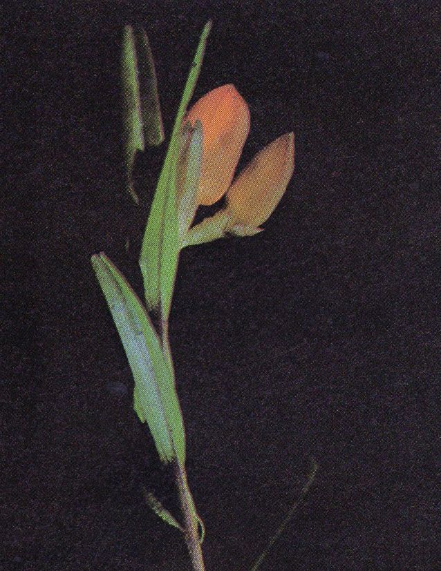 Found in El Salvador in cloud forests at elevations around 2600 meters as a mini-miniature sized, cold growing epiphyte with a close set, erect, sheathed below, leafy above stems carrying linear, obtuse, obliquely bilobed leaves that blooms in the later summer on a terminal, short, 2 flowered inflorescence carrying orange flowers