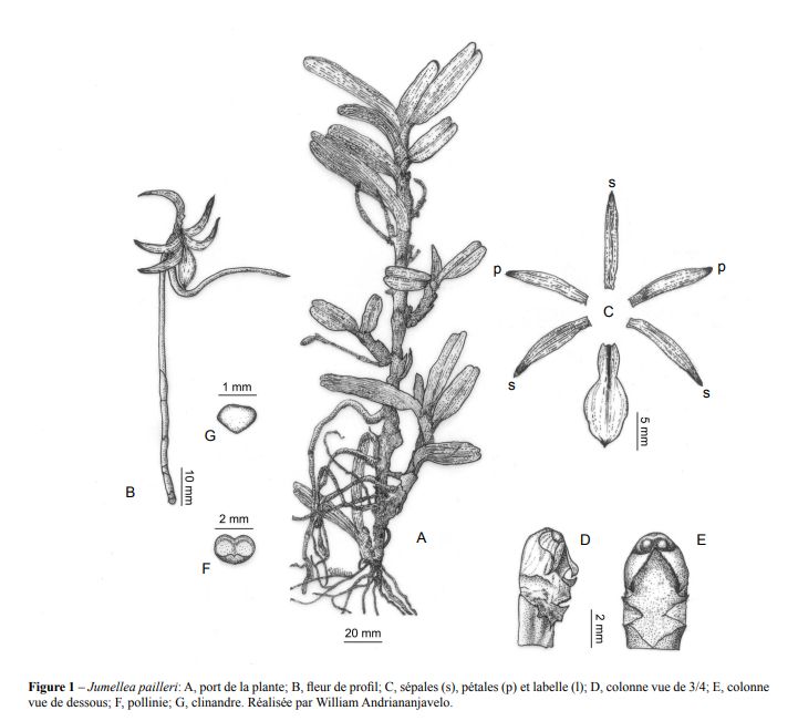 Jumellea pailleri F.Rakotoar. 2011 GROUP 4 TYPE Drawing by © William Andriananjavelo and Jumellea pailleri [Orchidaceae], A new Endemic species from the Colorosd Archipelago Website