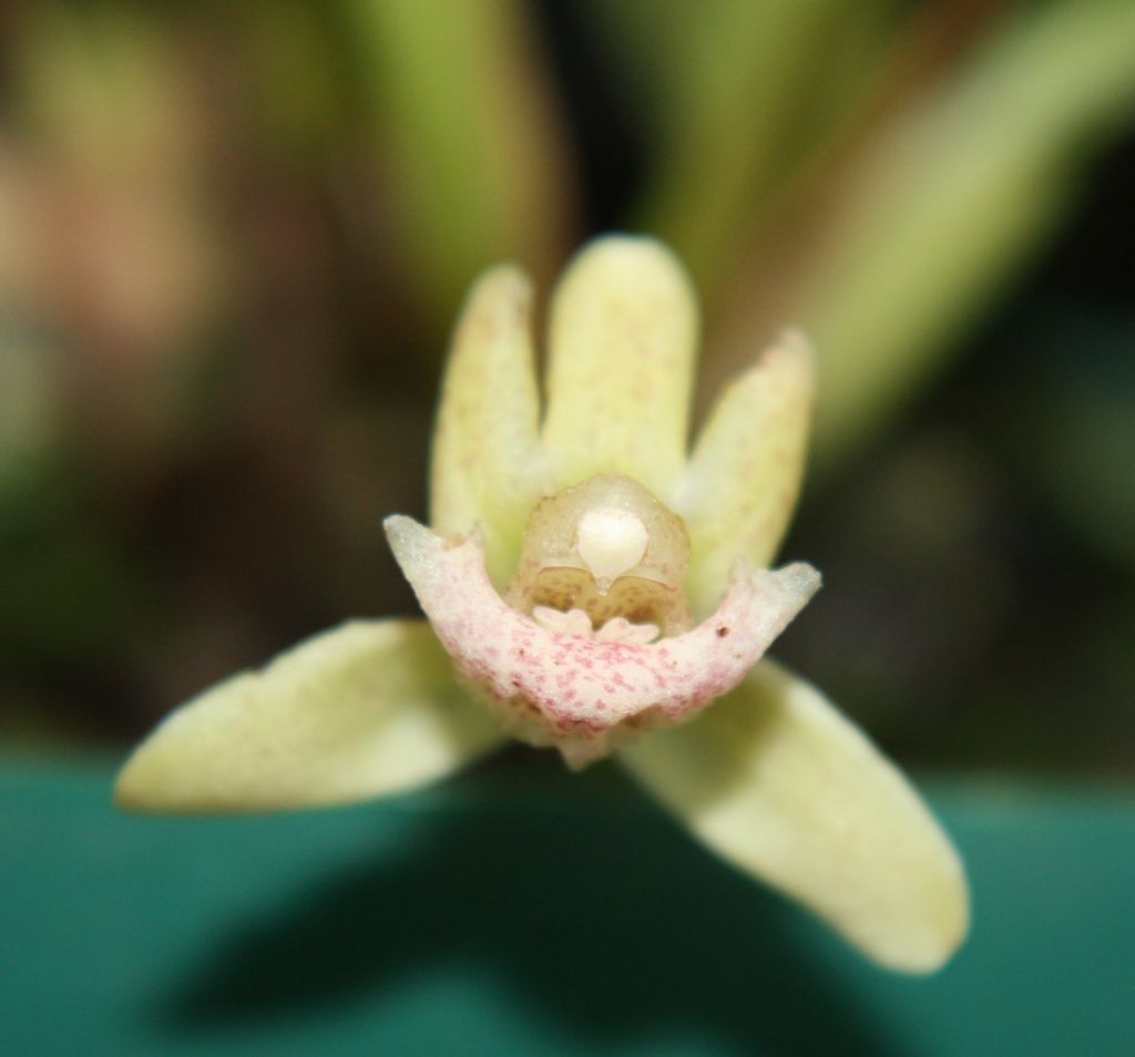 Found in Colombia and Ecuador in very wet montane forests at elevations of 1000 to 1300 meters as a small sized, cool growing epiphyte with distichous, conduplicate and articulated at the base sheaths carrying progressively larger, narrowly lanceolate, acute leaves that blooms at most any time of the year on an axillary, erect, 2" [5 cm] long, single flowered inflorescence holding the flower below mid-leaf height.