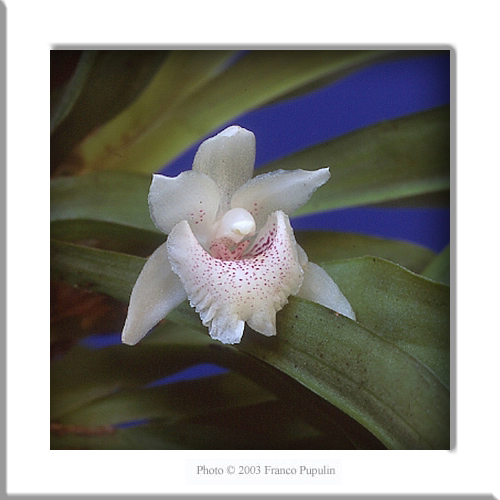 Found in Costa Rica and Panama in premontane rain forest to cloud forest and disturbed primary forests at elevations around 1000 meters as a small sized, warm to cool growing epiphyte with 3 to 5, ligulate to oblanceolate, acute leaves that blooms in the fall and winter on an axillary, 1 to 1.28" [2.5 to 3.2 cm] long, single flowered inflorescence