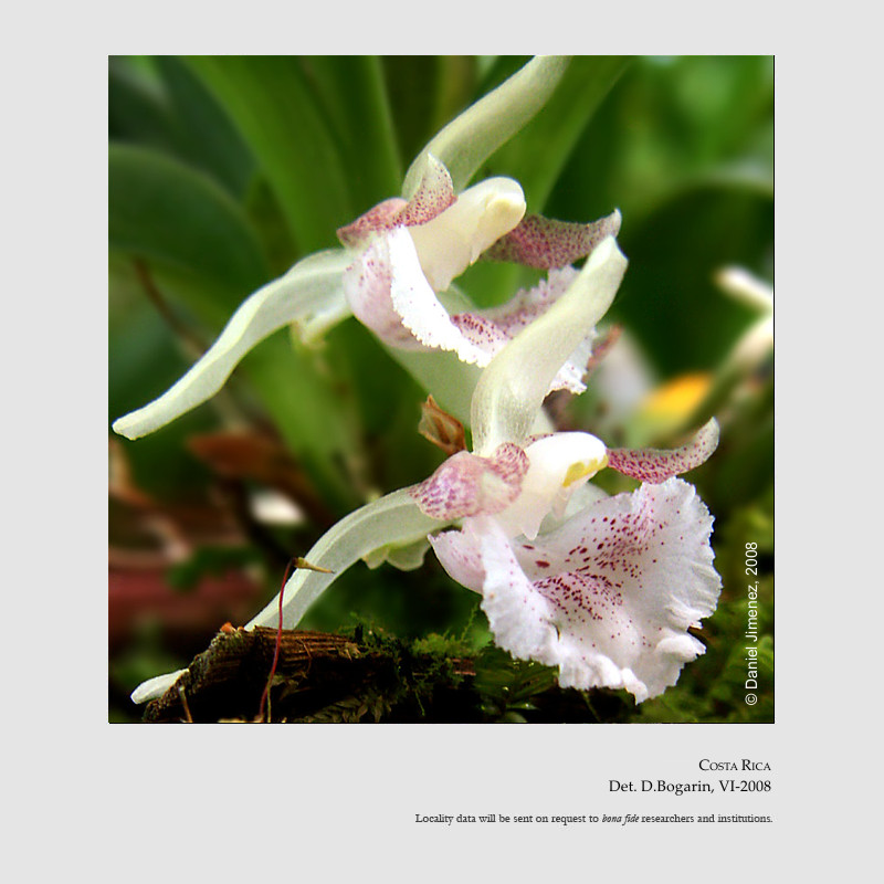 References W3 Tropicos, Kew Monocot list , IPNI ; Lankester's Epidendra Website CR ; *Lindleyana 15: 25. 2000; Rudolf Schlechter Die Orchideen Band 1C lieferung 44-45 pg 2763 - 2898 Brieger 2001; Manual de Plantas de Costa Rica Vol 3 Hammel, Grayum, Herrera and Zamora 2003; Vanishing Beauty, Native Costa Rican Orchids Vol 1 Pupulin 2005 photo fide; Huntleya and Related Orchids Harding 2008 photo good;
