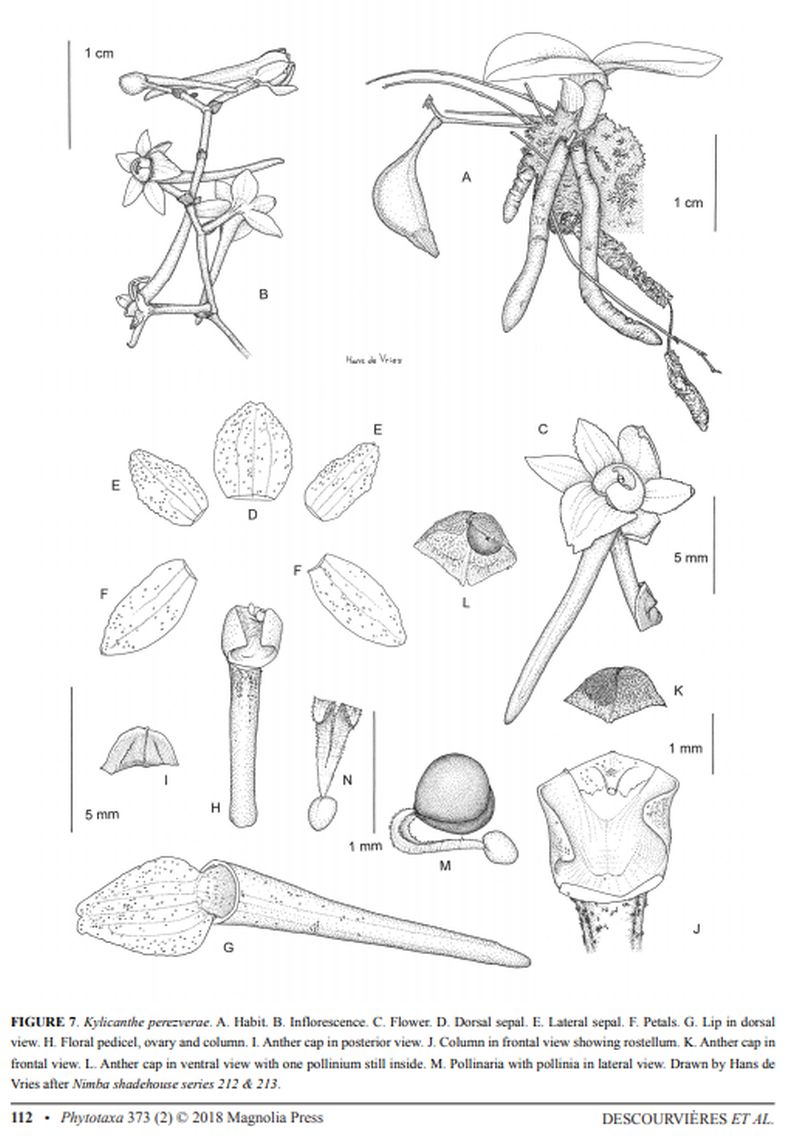 Kylicanthe perezverae Descourv., Stévart & Farminhão 2018 TYPE Drawing by © Hans de Vries and Phytotaxa 373 (2) © Descourv. Stévart & Droissart 2018 - A New Genus of Angraecoid Orchids and the Research Gate Website